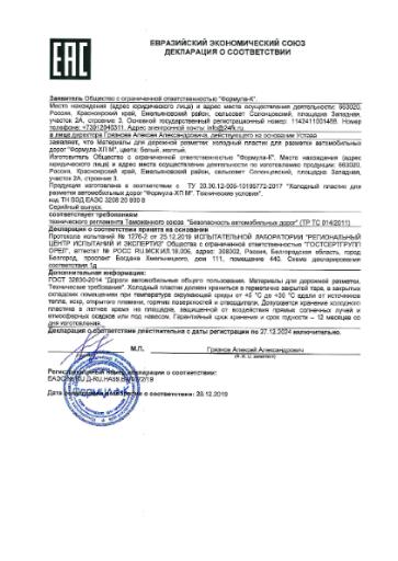 Холодный пластик «Формула-ХП М» предназначен для устройства горизонтальной разметки проезжей части автомобильных дорог, улиц с усовершенствованным покрытием по ГОСТ Р 51256-2018 и 32953-2014, стоянок, остановок, производственных территорий, а также мостов и других специализированных объектов.